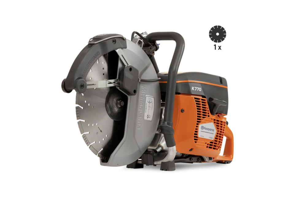 Husqvarna K 770 SmartGuard is a powerful all-round power cutter with features that make it one of the best power cutters on the market. Equipped with SmartGuard, an extended blade guard design which reduces the likelihood of accidents and circumstances when a kickback may occur as it emphasises correct technique and correct cutting zone. The semi-automatic SmartTension™ system allows for optimal power transmission, minimum wear and maximum belt life. The light weight, outstanding power-to-weight ratio, the reliable start and exceptionally low vibrations mean less strain and maximised productivity.