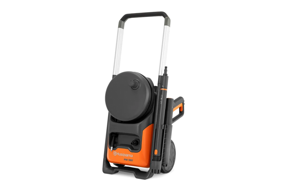 Designed with convenient onboard storage so you have everything you need within easy reach. The PW 360 is compatible with several accessories, and to easily get the optimal setup for each task, nozzle and pressure guides are available on the washer. When the job is finished, roll-up is done quickly using the hose reel with support guide, providing efficient hose storage. The pressure washer also features large soft tread wheels for great traction in demanding terrain, low force trigger gun, and foldable aluminum handle to reduce the space needed for storage.